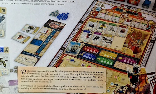 Rekrutiert Experten für euere Forschungsteams, leitet Expeditionen zu anderen Kontinenten, erforscht die fazinierendsten Geschöpfe der Erde und veröffentlicht schließlich eure Studien, um euer Ansehen zu steigern! Platziert dafür Würfel auf dem großen Spielplan - entweder eure eigenen oder die der anderen - und führt so die unterschiedlichsten Aktionen aus.
